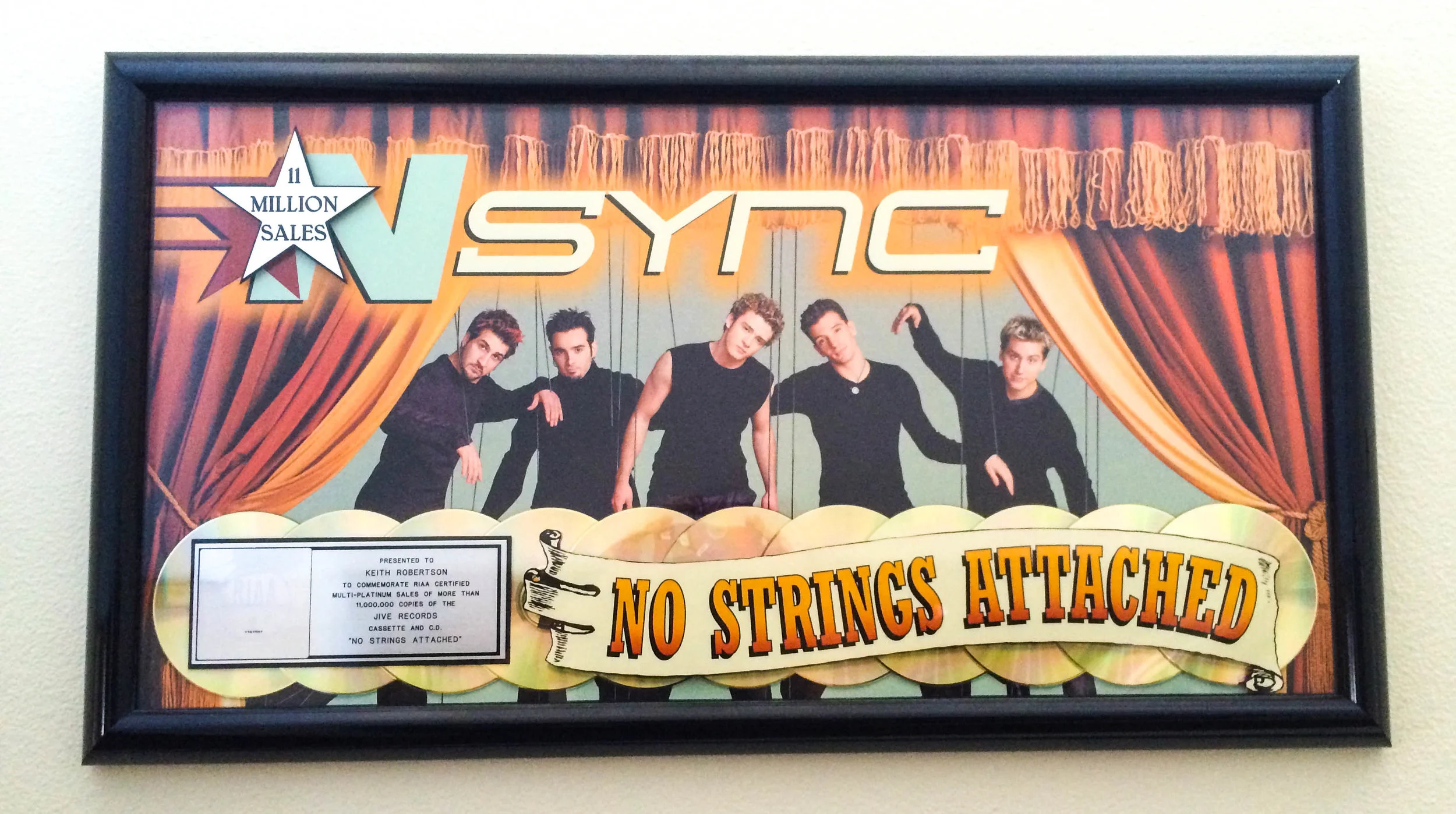 Keith's Diamond Award plaque for his contribution to the the N'Sync, No Strings Attached album.